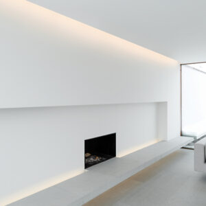 Compact and powerful continuous perimeter luminaire with plaster-in Plaster Trim knife edge detail for a perfect finish. Delivers light smoothly down the wall from a concealed position.
