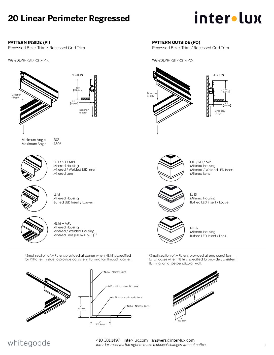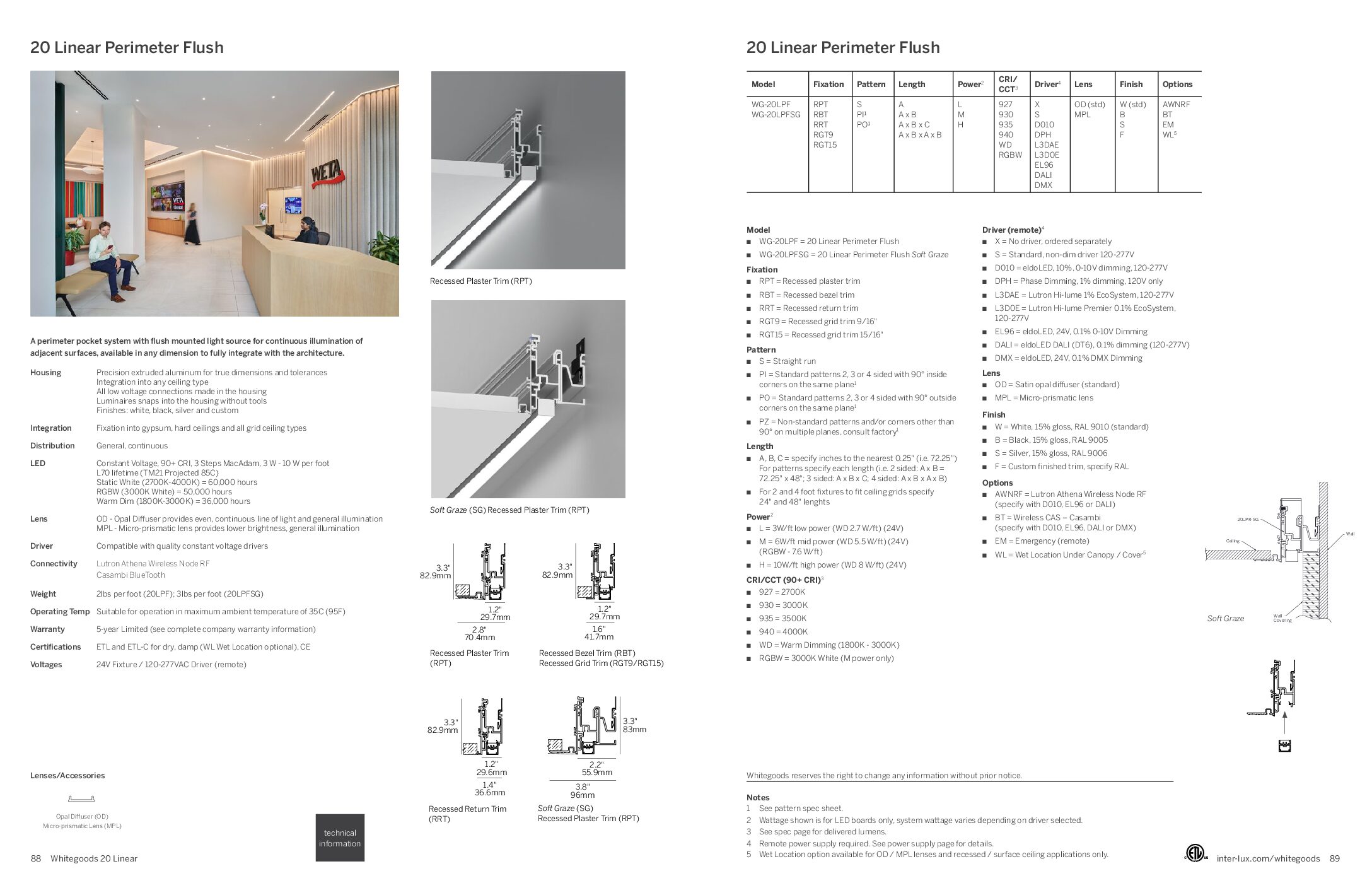 - Recessed perimeter mount fixture with regressed light for continuous mounting to any desired length (1/4″ increments), as well as standard grid multiples.