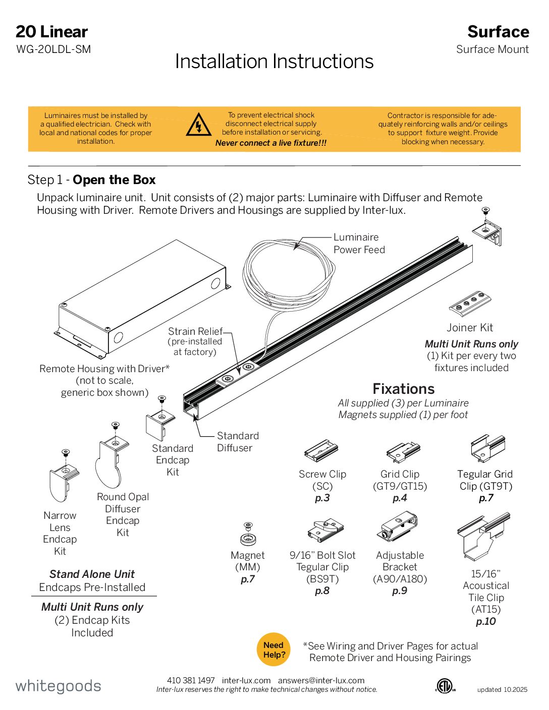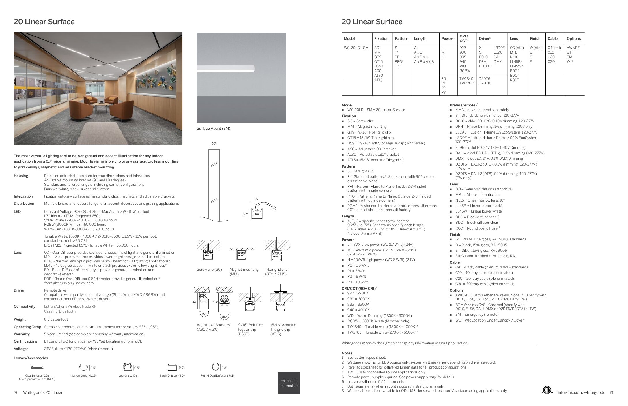 - Surface mounted fixture with very shallow depth for continuous mounting to any length (1/4″ increments), as well as standard grid multiples.