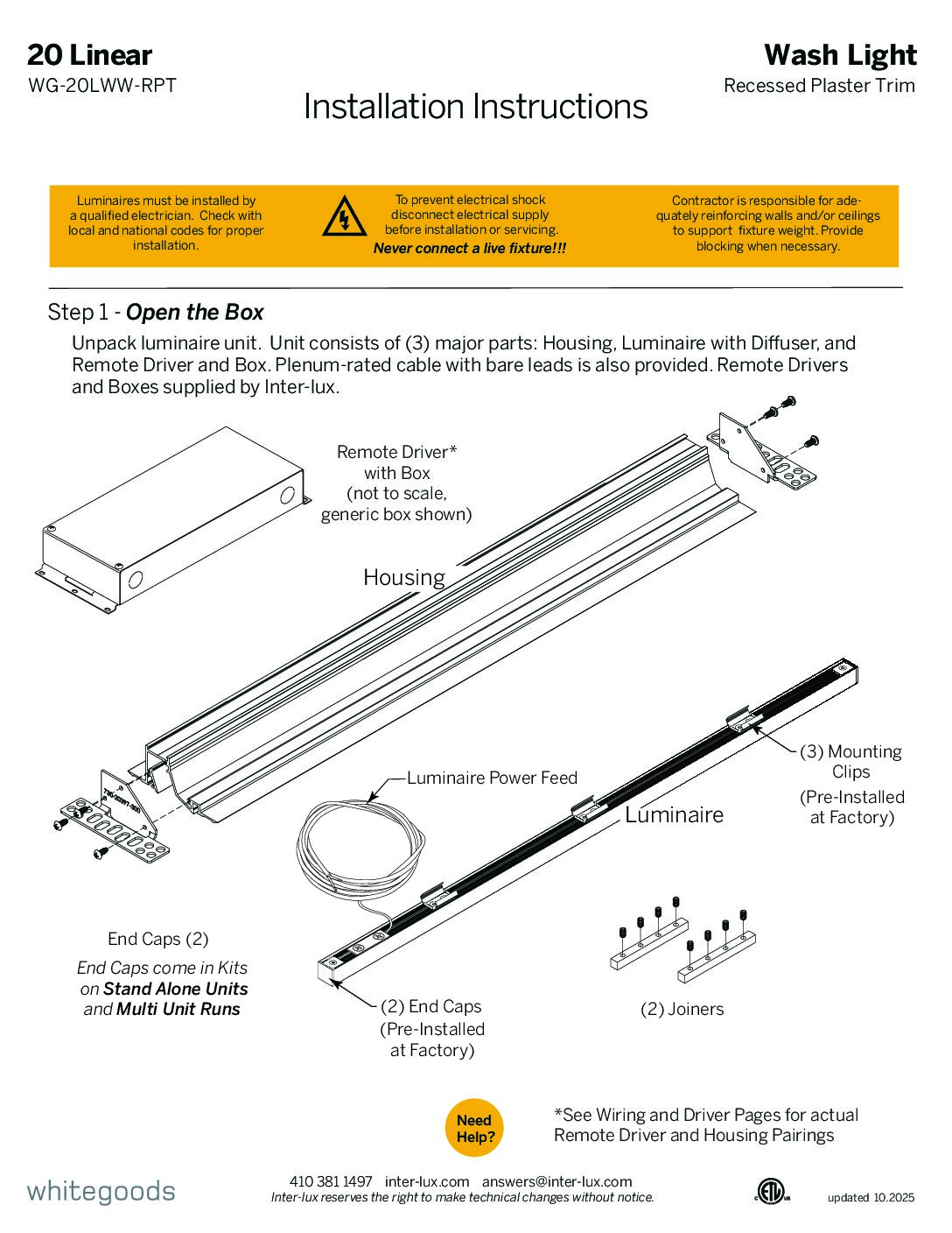 - Supplied with 4′ class 2 plenum rated feed cable per fixture length.