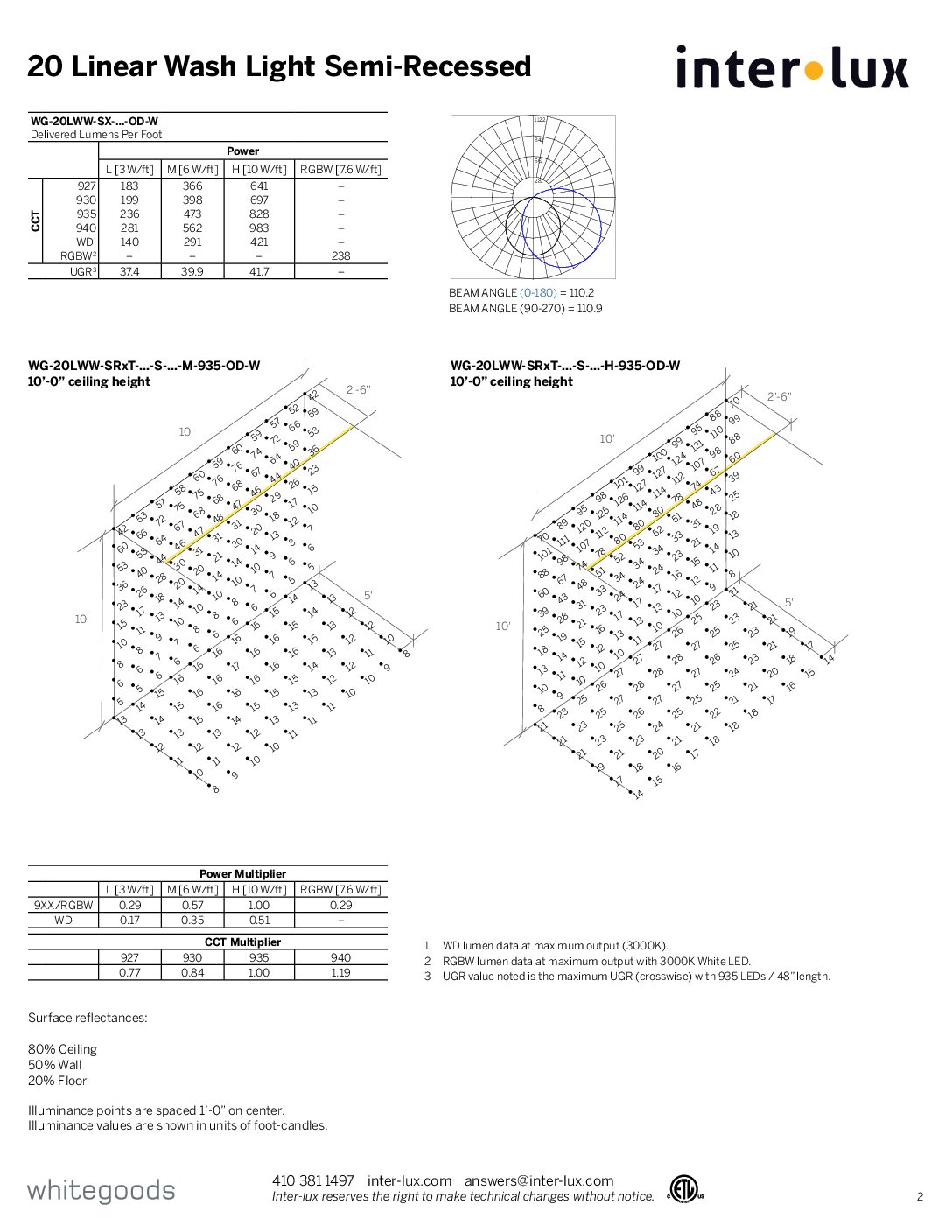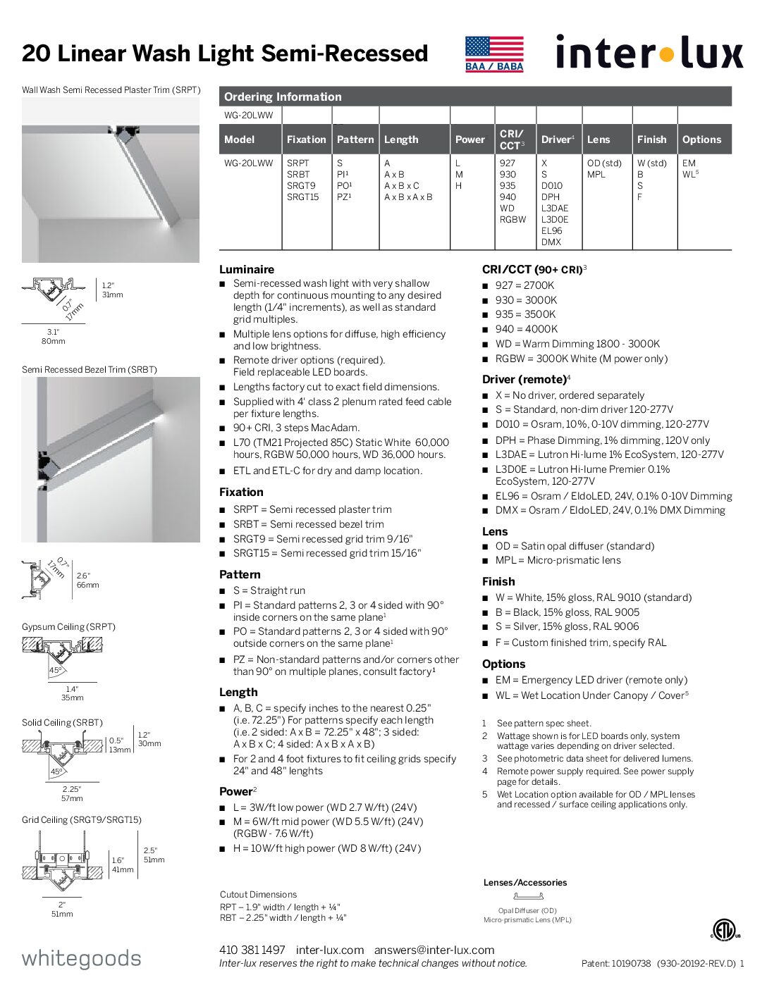 - Semi-Recessed Wash Light for even illumination of walls, ceilings and floors.