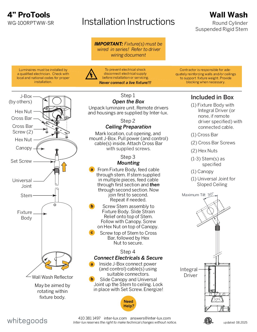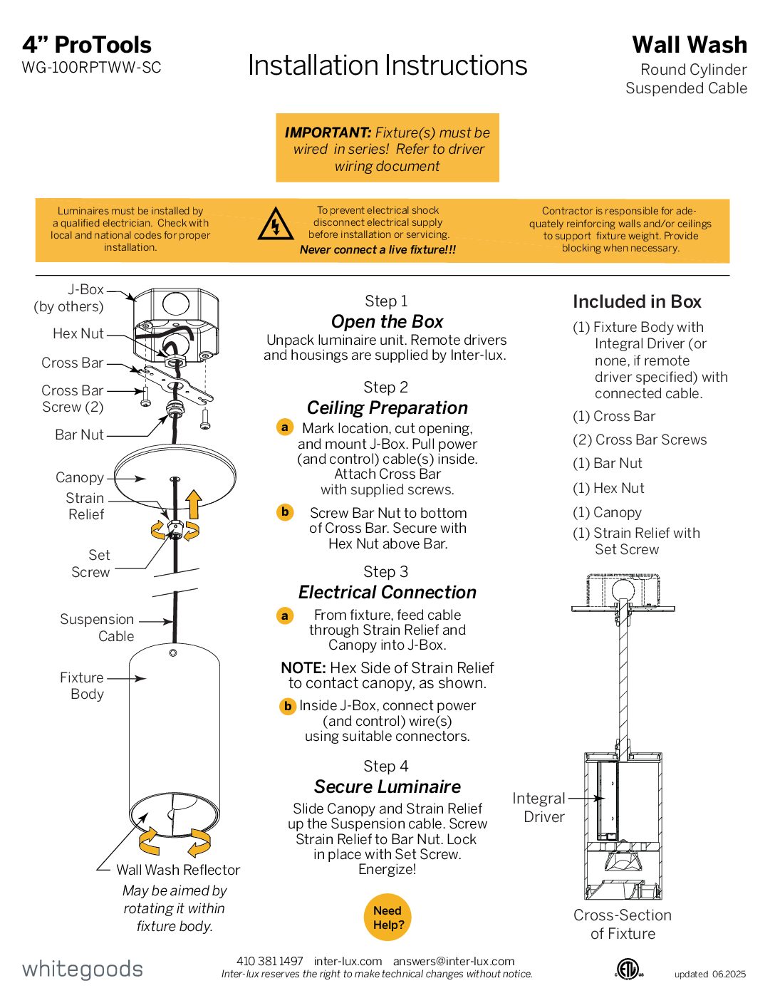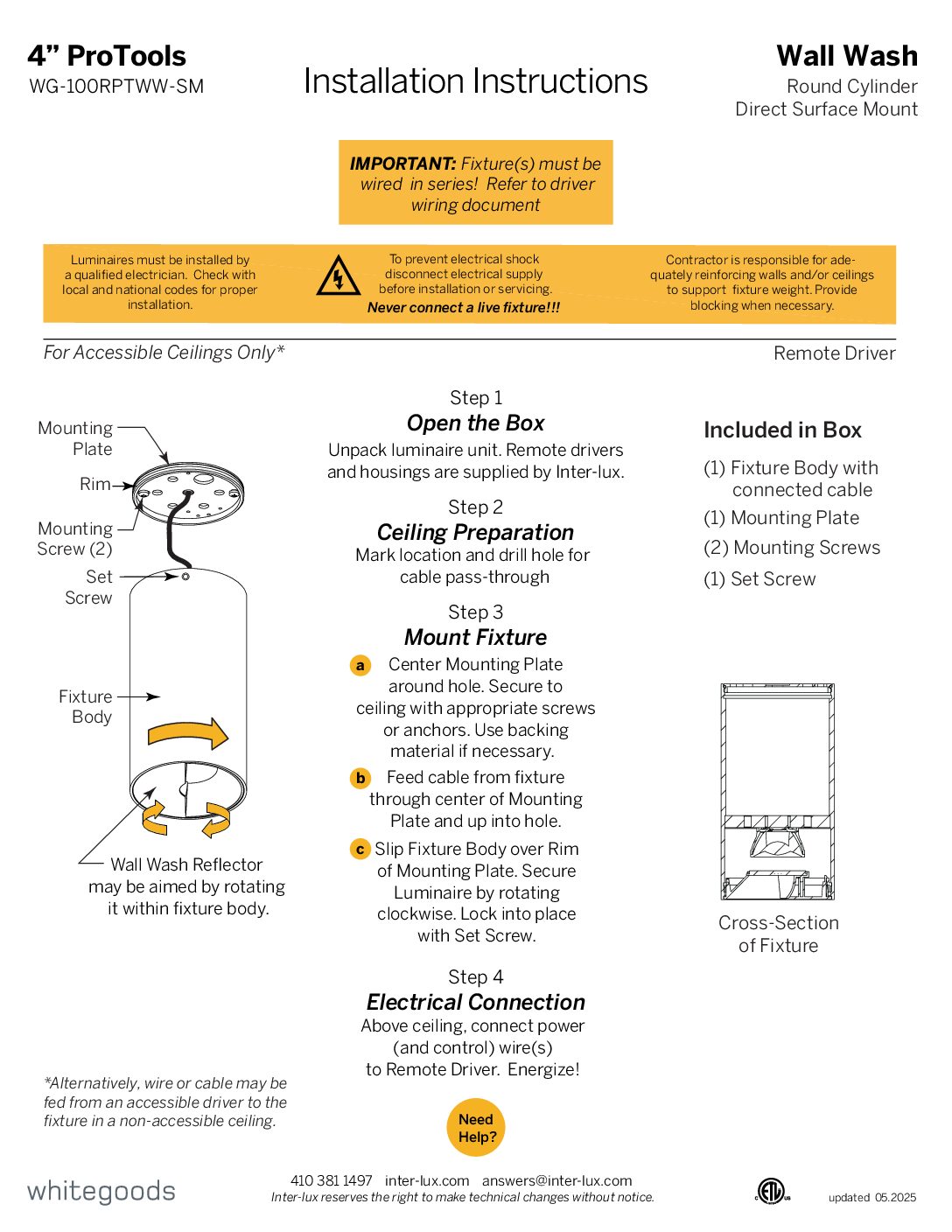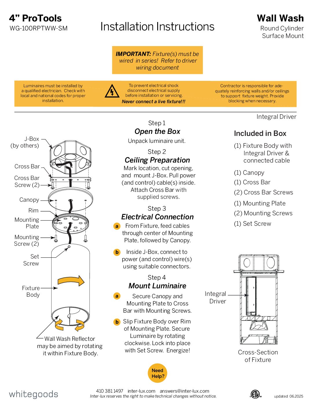 - 4″ round ceiling mounted cylinder low brightness wall wash.