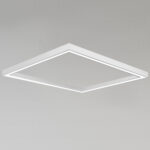 Square shaped pendant luminaire with aluminum profile frame, powder-coated in white. Barisol with translucent double layer film. Housing: Aluminum profile frame, powder-coated in white with translucent foil (fire rating B1). Size (L x W x H): 48.9 x 48.9 x 3.3″ LED: 24V / CRI > 90 / Mac Adam 3 / SELV / L80 MORE